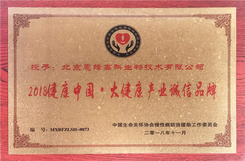 北京惠蜂董事長倪仔鑫上臺領獎 會議期間,北京惠蜂被中國生命關懷慢性病防治援助工作委員會授予“2018健康中國·大健康產業(yè)誠信品牌”